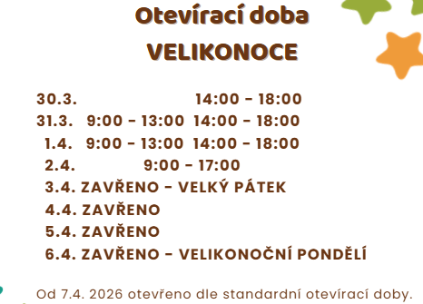 22.12. 2025 – 4.1.2026 upravená otevírací doba viz informace Facebook, Instagram